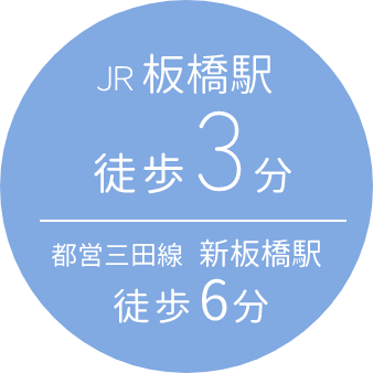 当院は板橋駅東口徒歩3分・新板橋駅A2出口から徒歩6分の、非常に通いやすい立地にございます。駅から近いため、家事の合間や仕事帰りや学校帰りでも便利に通院することができます。