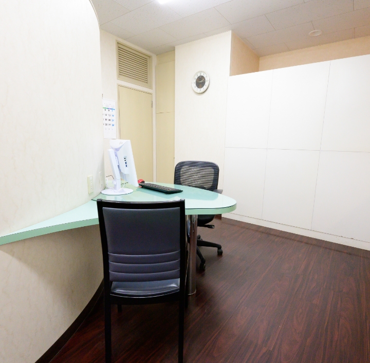 治療方針や検査結果などをお話しする部屋です。 患者様が周囲を気にせず遠慮なく話ができるような空間作りを心がけています。