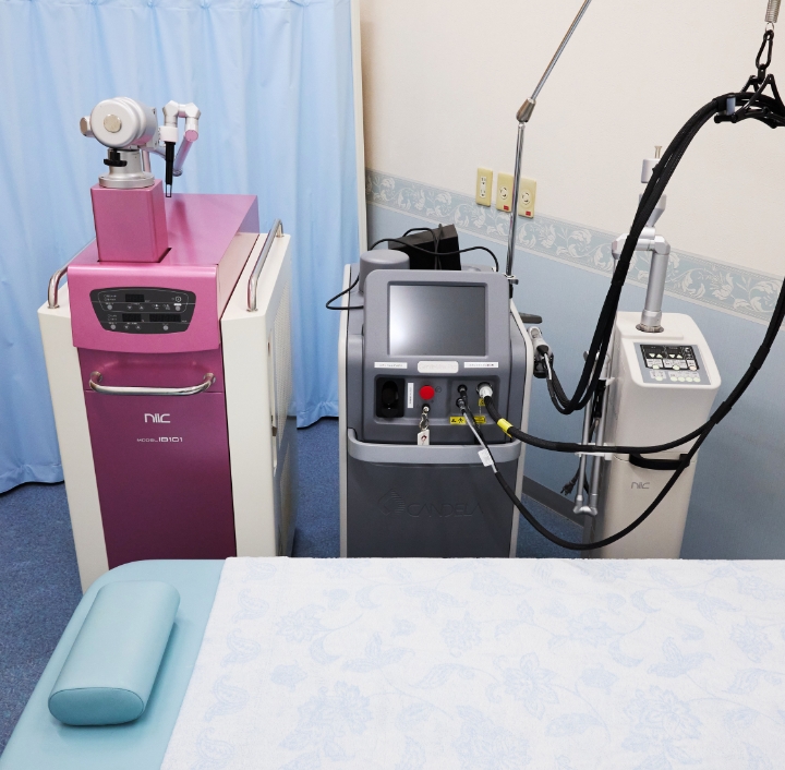 レーザー脱毛やしみの治療をしています。診察室とは別の空間ですので、ゆっくりと治療を受けていただけます。