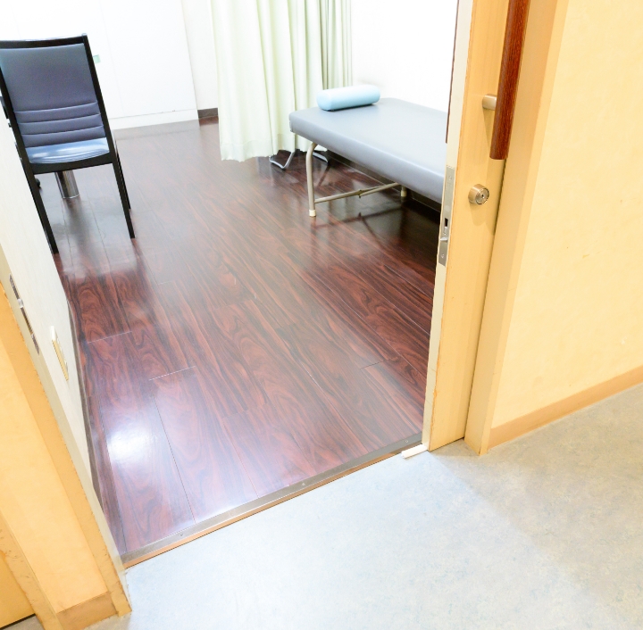 診察室などの出入り口は段差がなく、バリアフリー設計となっております。高齢の患者さん、足腰のご不自由な方もご来院しやすくなっております。